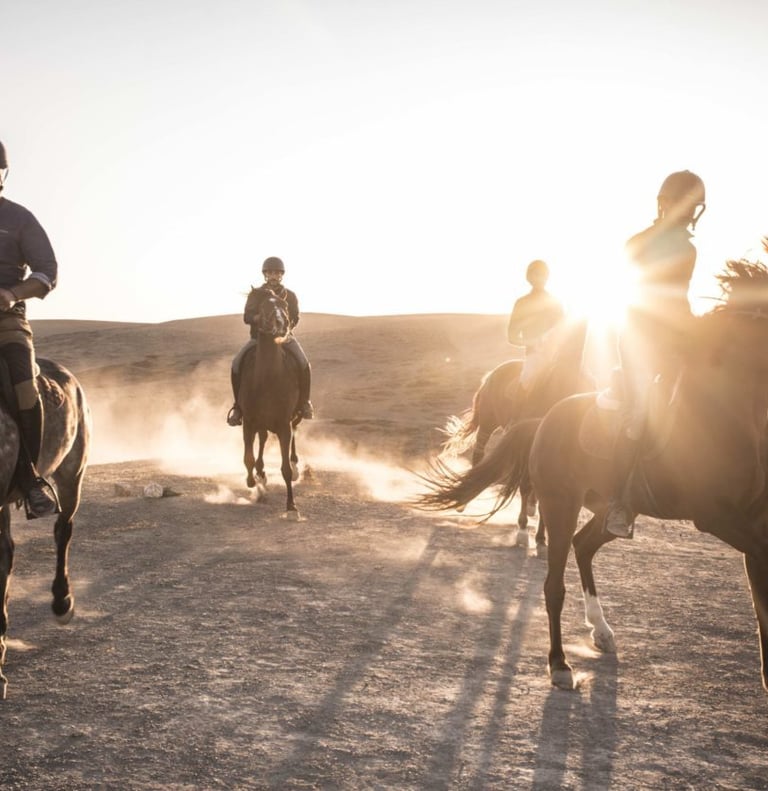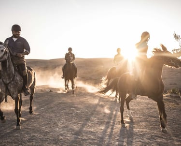 Balade à cheval : Moment paisible au coucher du soleil.