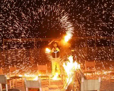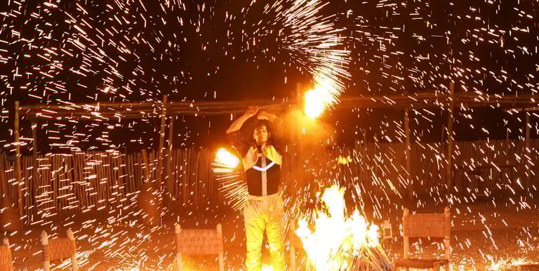Dîner avec spectacle : Repas traditionnel et ambiance magique sous les étoiles.